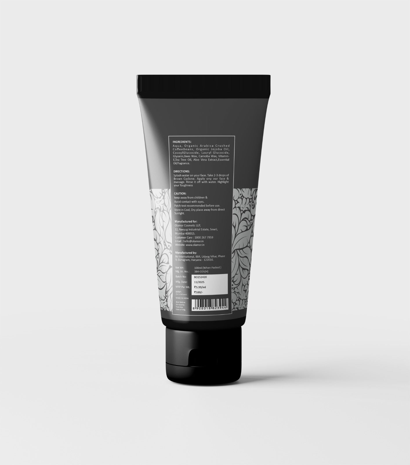 Brown Cyclone face wash, coffee face wash, organic coffee face wash, face wash for oily skin, acne control face wash, tea tree face wash, jojoba oil face wash, vitamin E face wash, aloe vera face wash, deep cleansing face wash